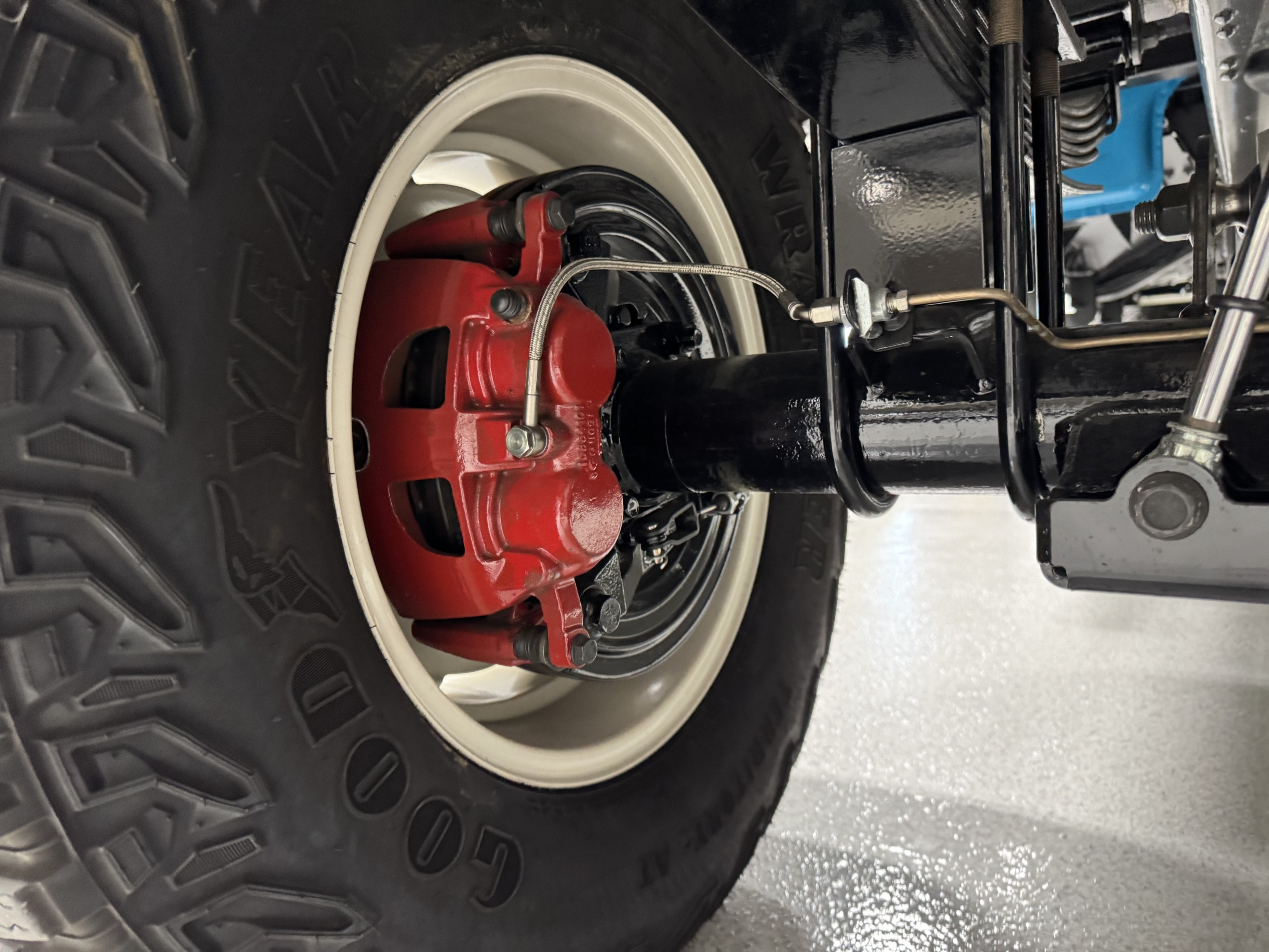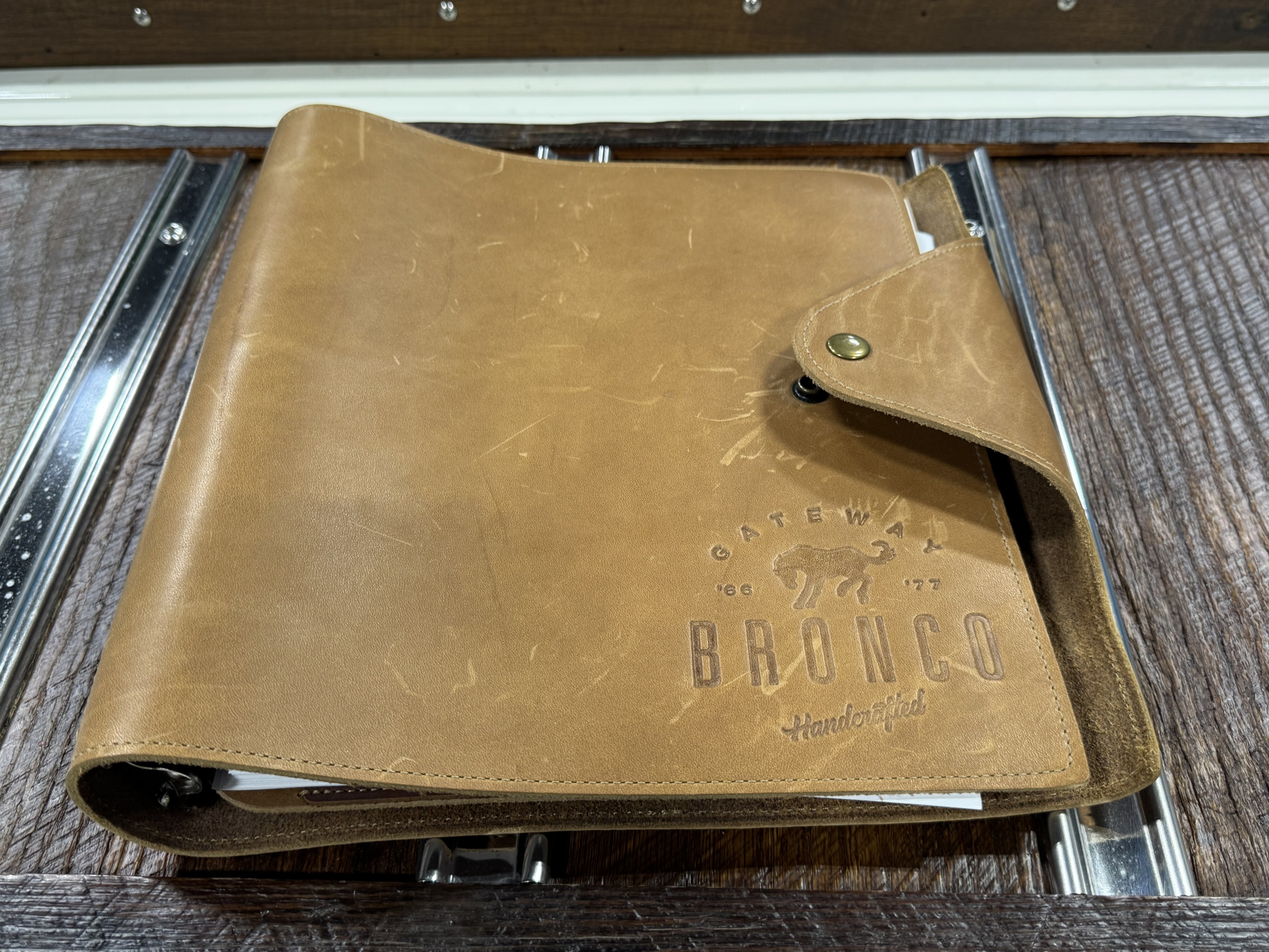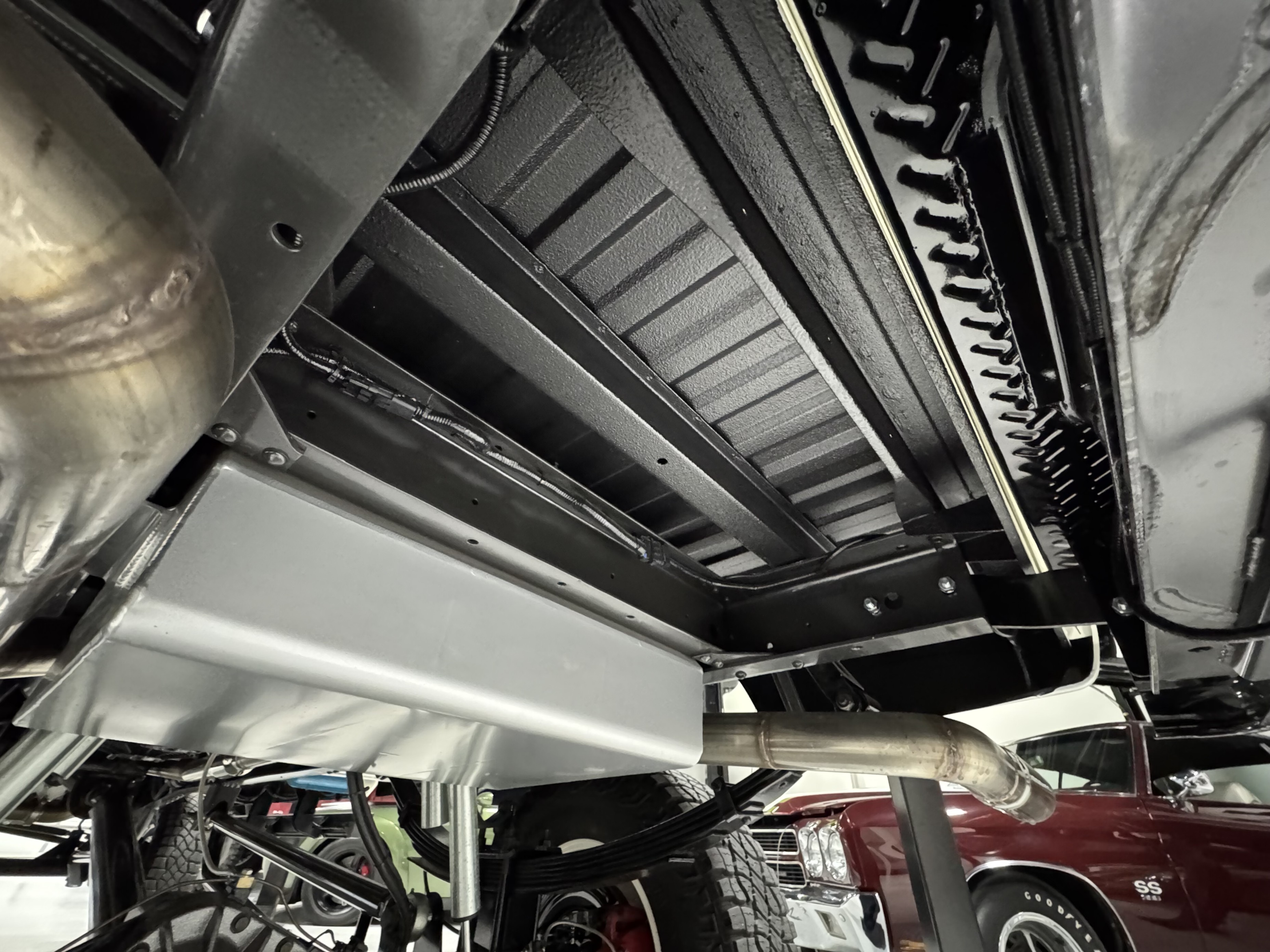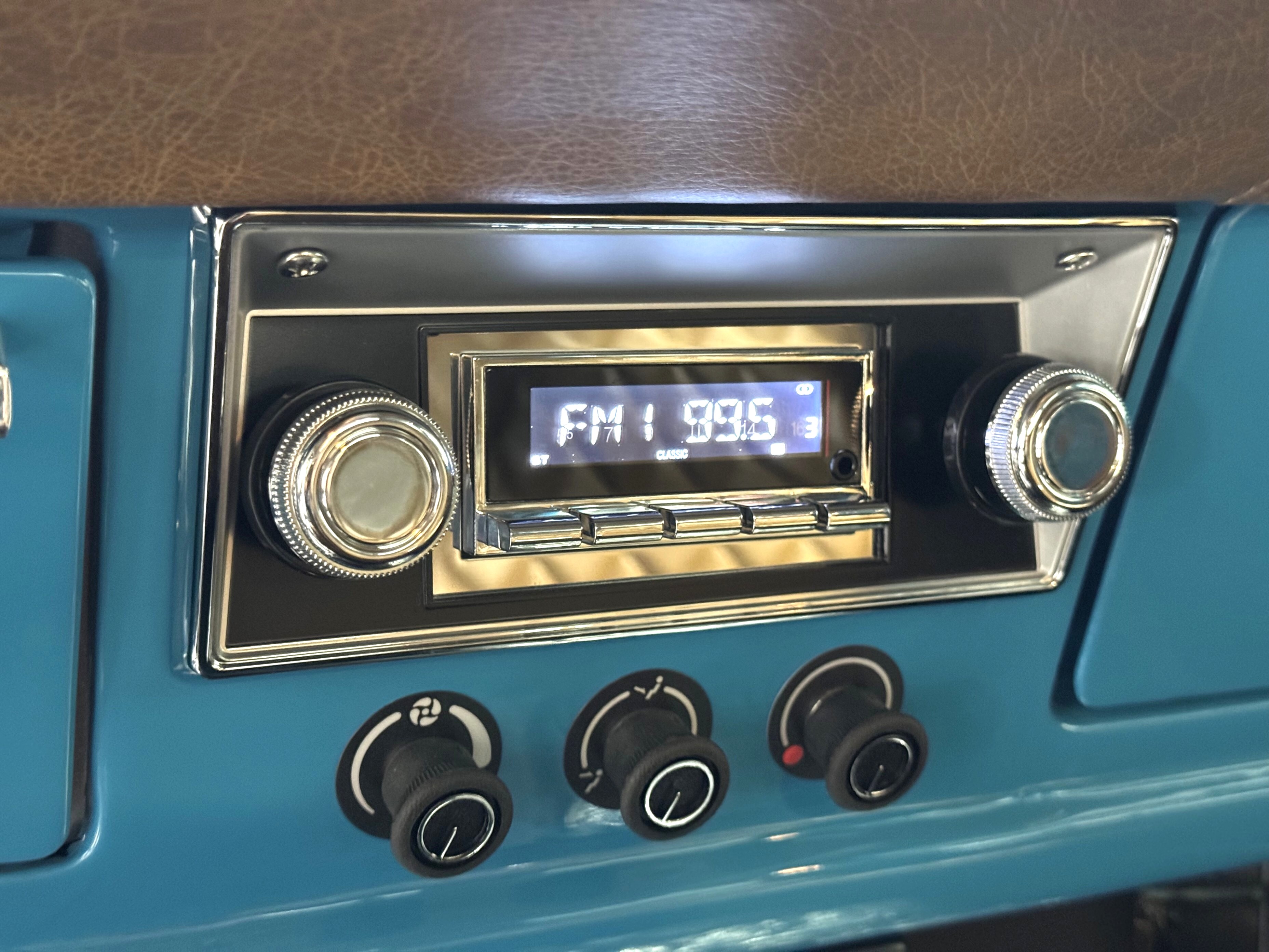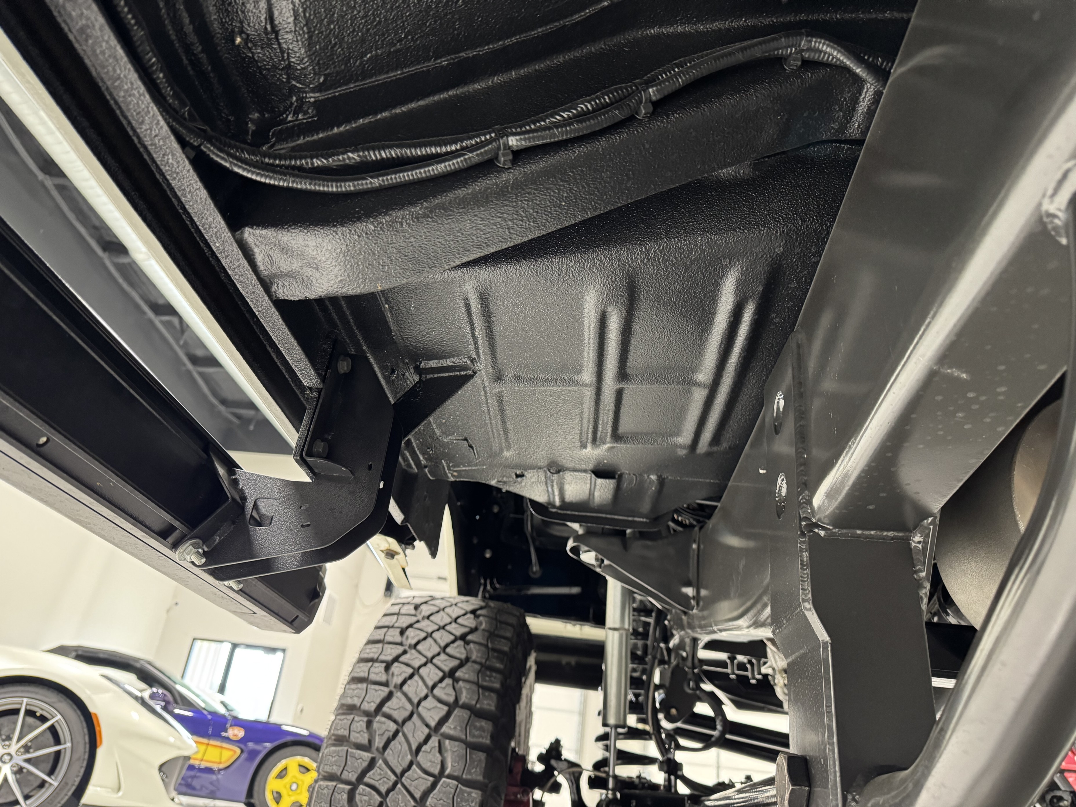 Additional features include Eaton ELocker front and rear differentials, Dana axles, power side steps, Hydroboost power brake assist, Wilwood four-wheel disc brakes, a suspension lift, Bilstein shock absorbers, a four-link rear suspension system, and Detroit Steel Wheels. Fueltech FT550 ECU, Shelby-style wood steering wheel, Dakota digital instrumentation, and a retro-style digital / bluetooth stereo. Vintage Air and power windows. This was a $402K custom build by Gateway Bronco.