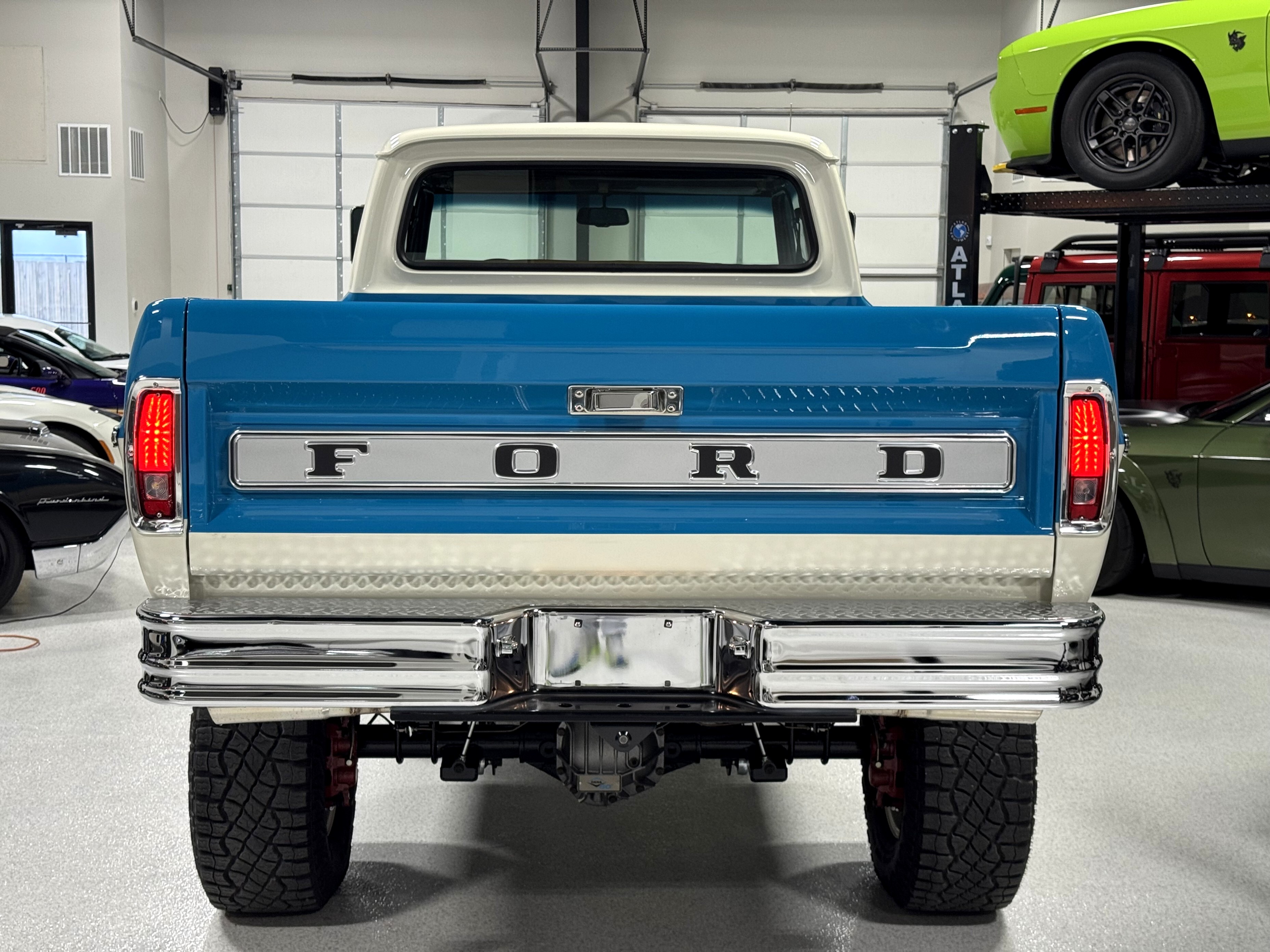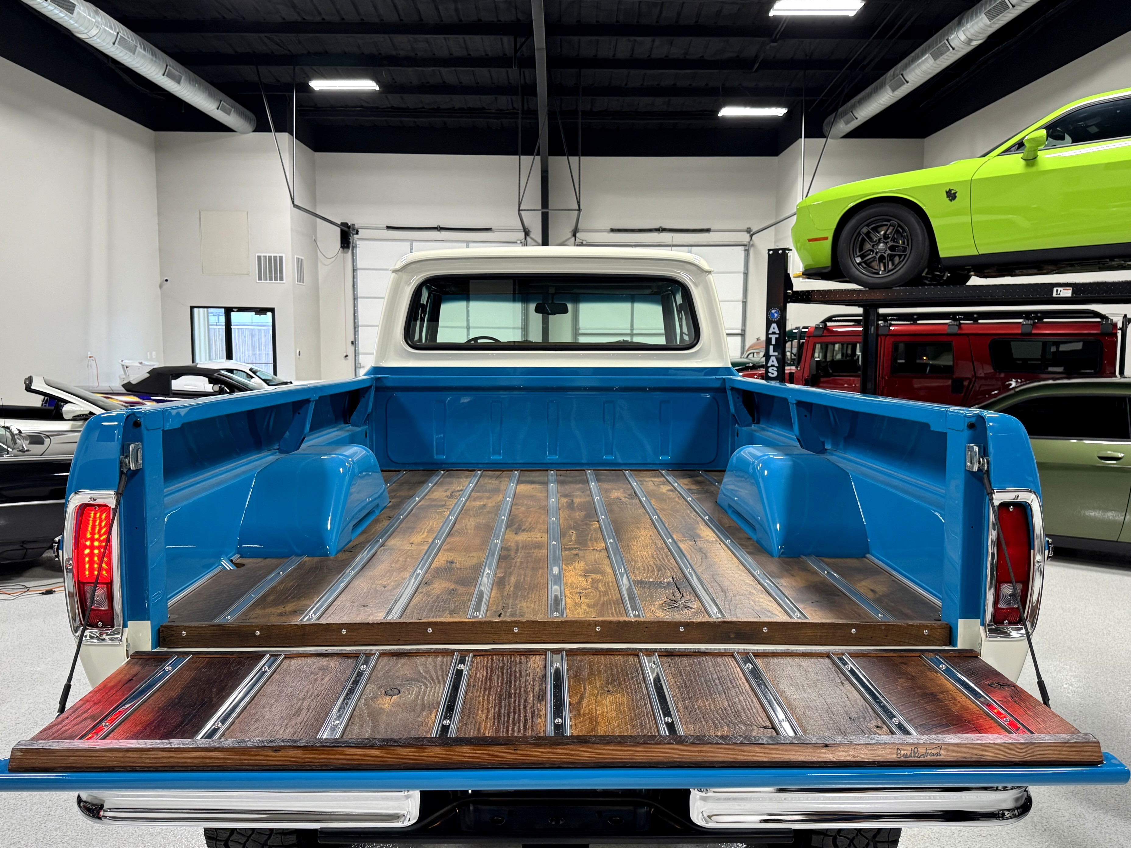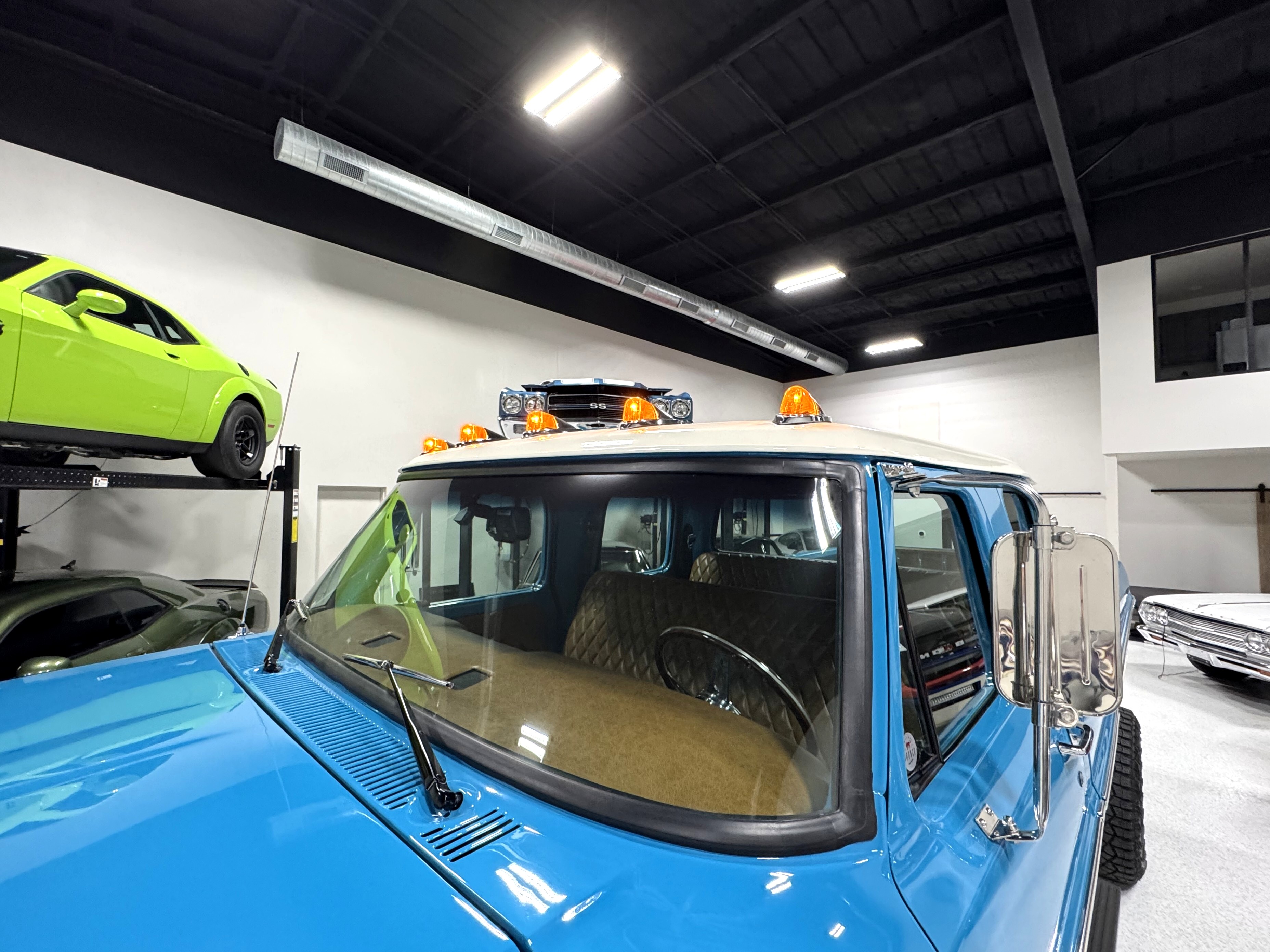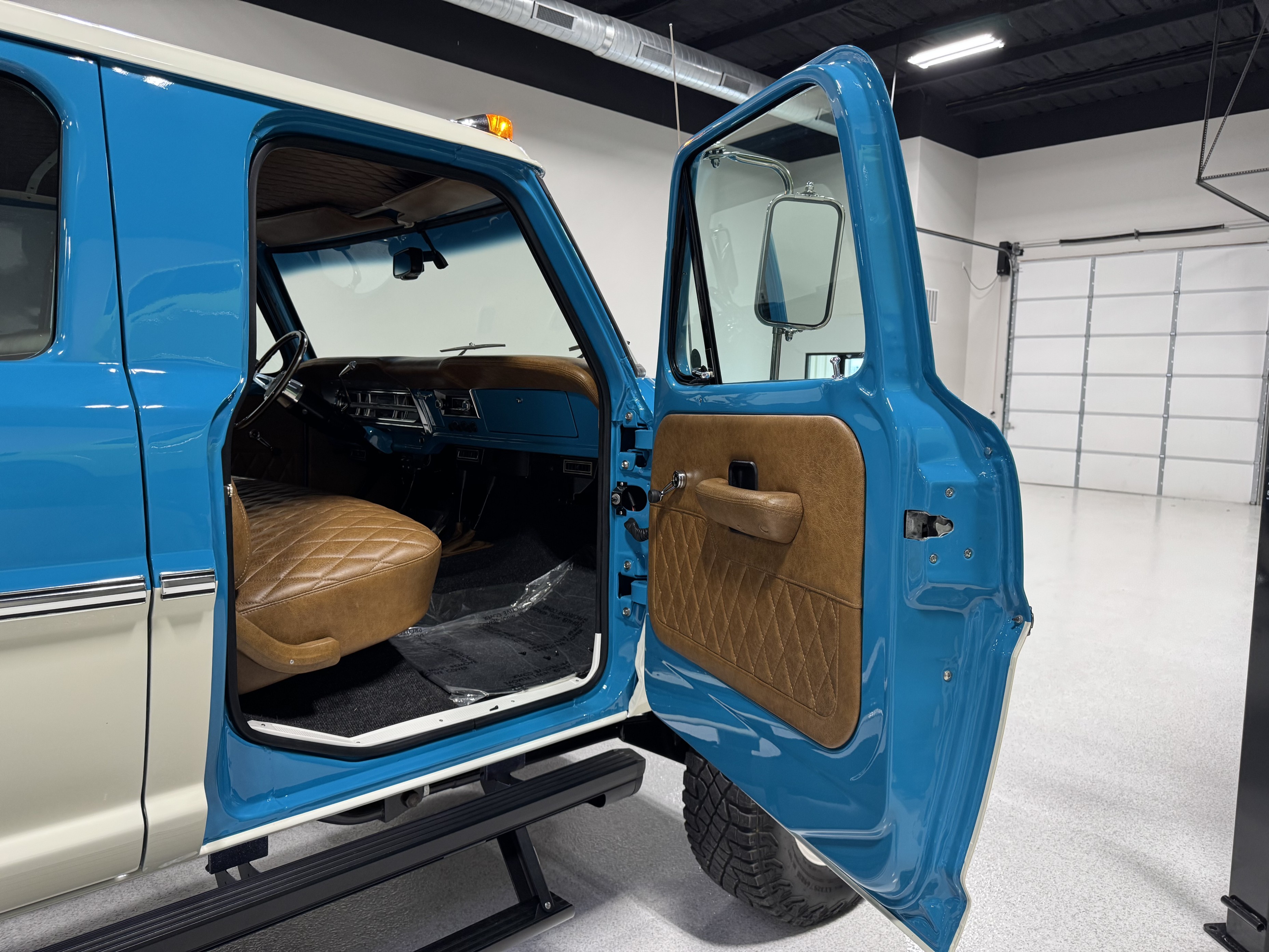 This 1972 Ford F350 4WD, built for SEMA by Ford Licensed modifier...Gateway Bronco, this rig is powered by a supercharged Godzilla 7.3L engine paired with a 10-speed automatic transmission. Finished with a distressed leather interior, barn wood bed, German square weave carpet, and Bluetooth audio, it showcases a bold blend of show-level presence and thoughtful, driver-focused craftsmanship. This truck is still under full warranty with Gateway Bronco.