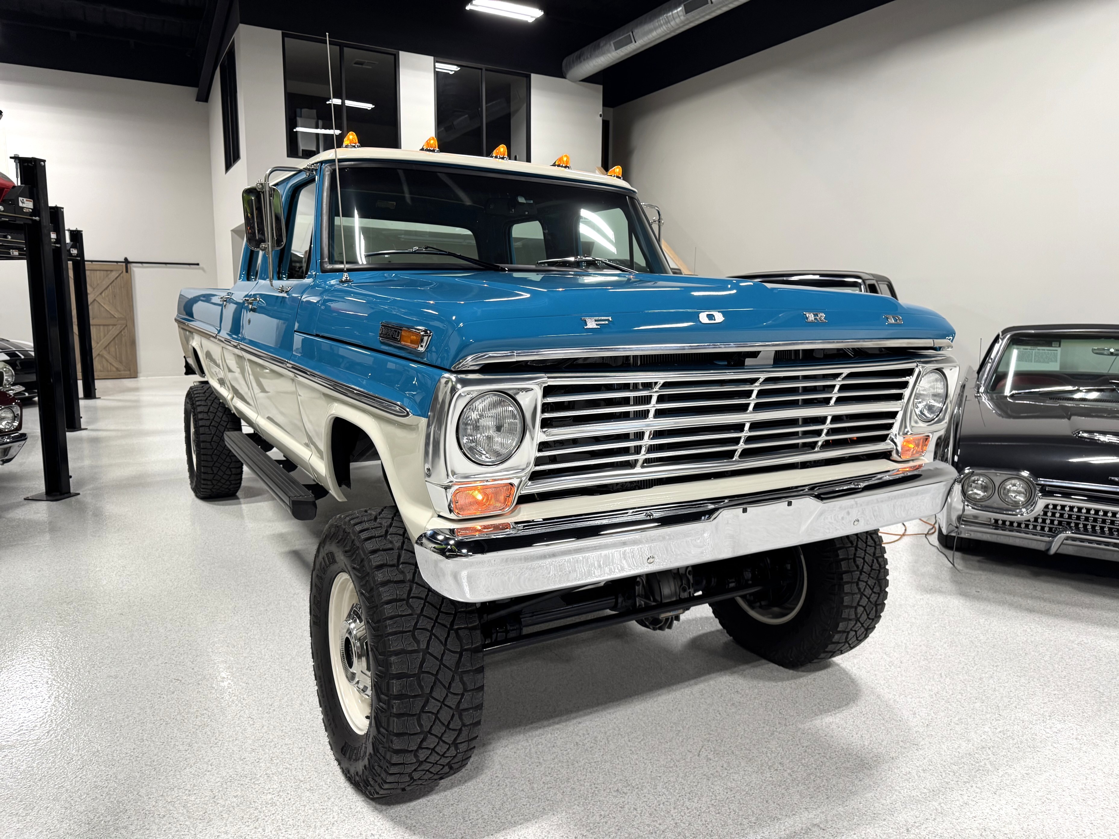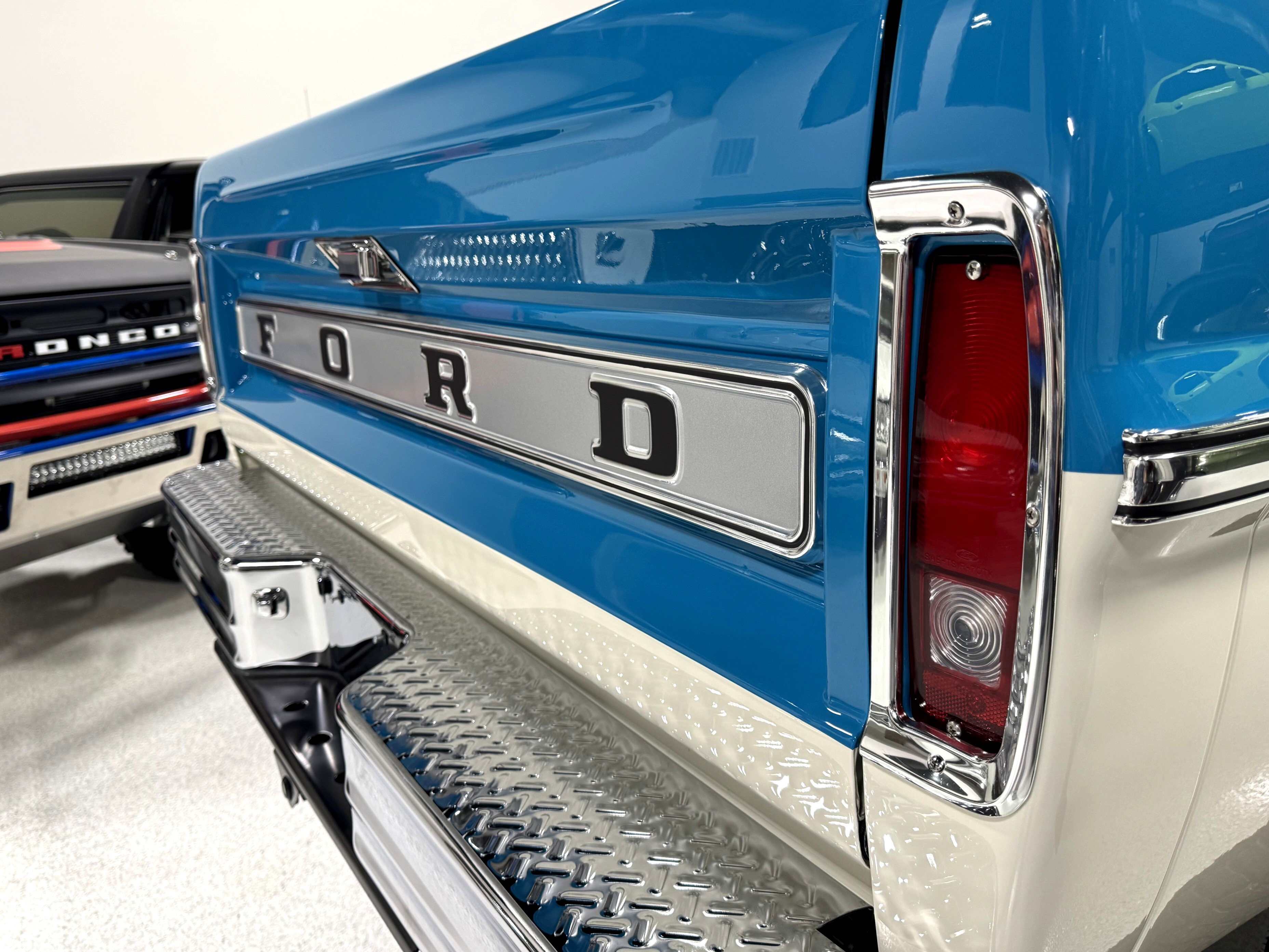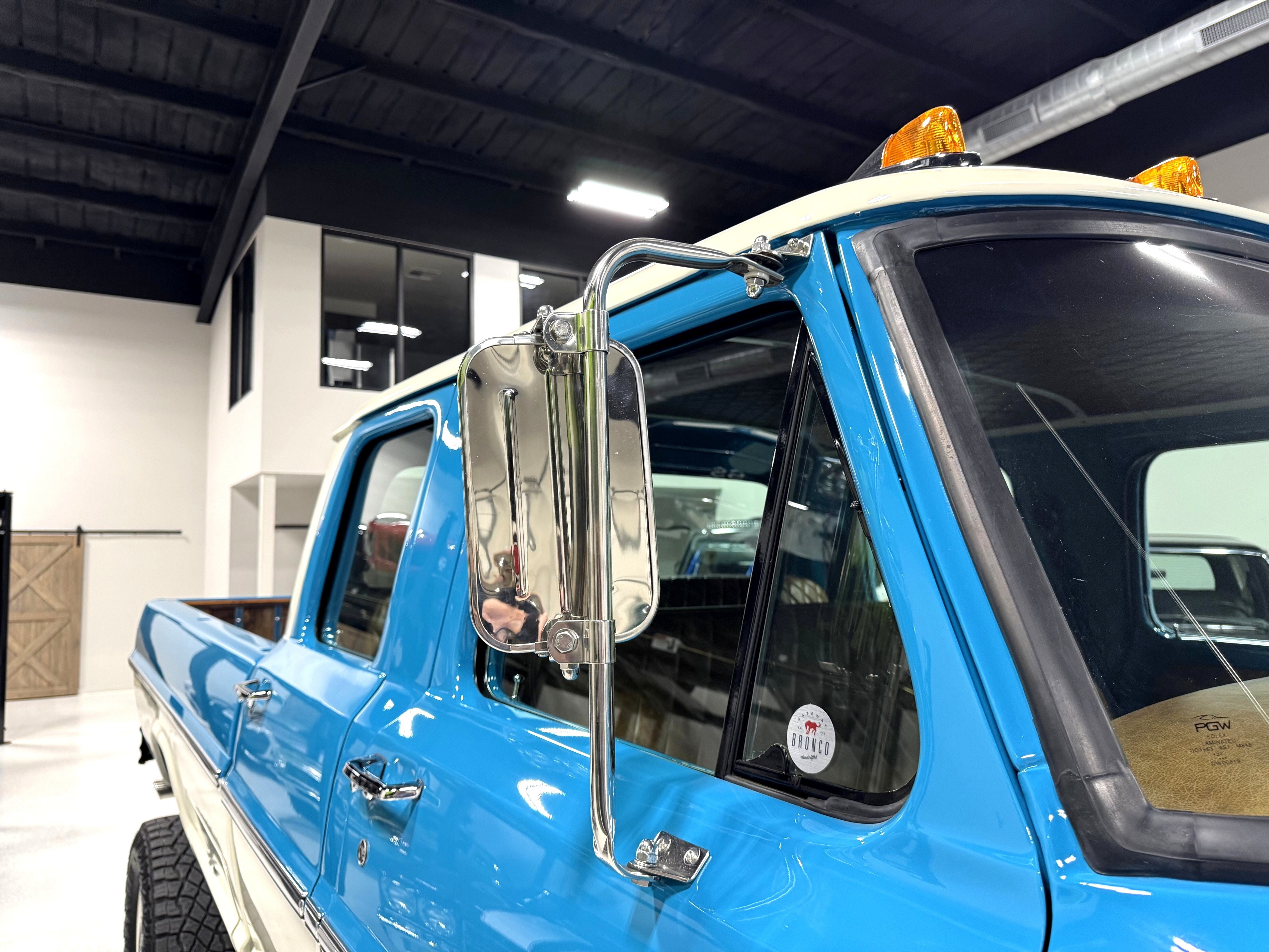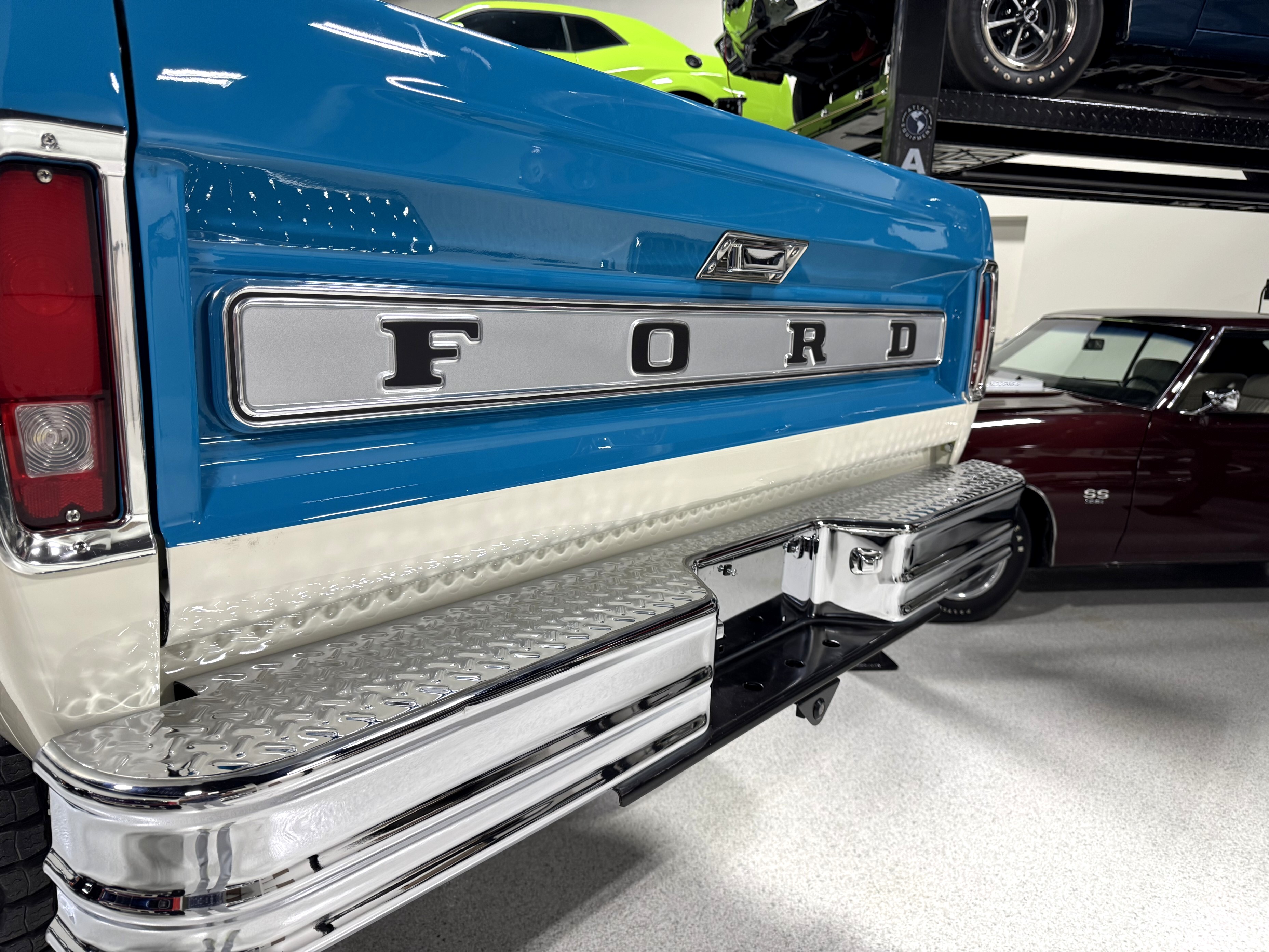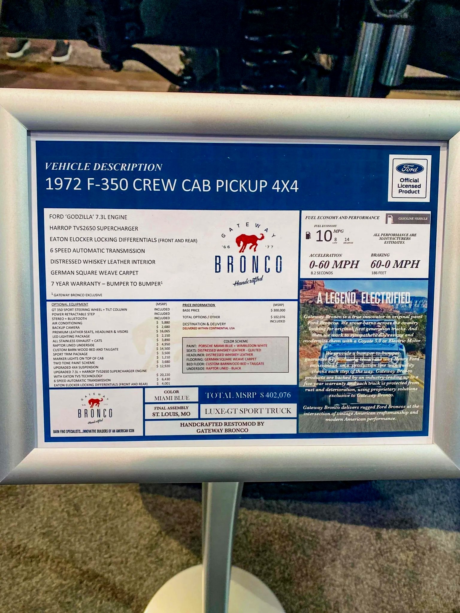 This 1972 Ford F350 4WD, built for SEMA by Ford Licensed modifier...Gateway Bronco, this rig is powered by a supercharged Godzilla 7.3L engine paired with a 10-speed automatic transmission. Finished with a distressed leather interior, barn wood bed, German square weave carpet, and Bluetooth audio, it showcases a bold blend of show-level presence and thoughtful, driver-focused craftsmanship. This truck is still under full warranty with Gateway Bronco.
