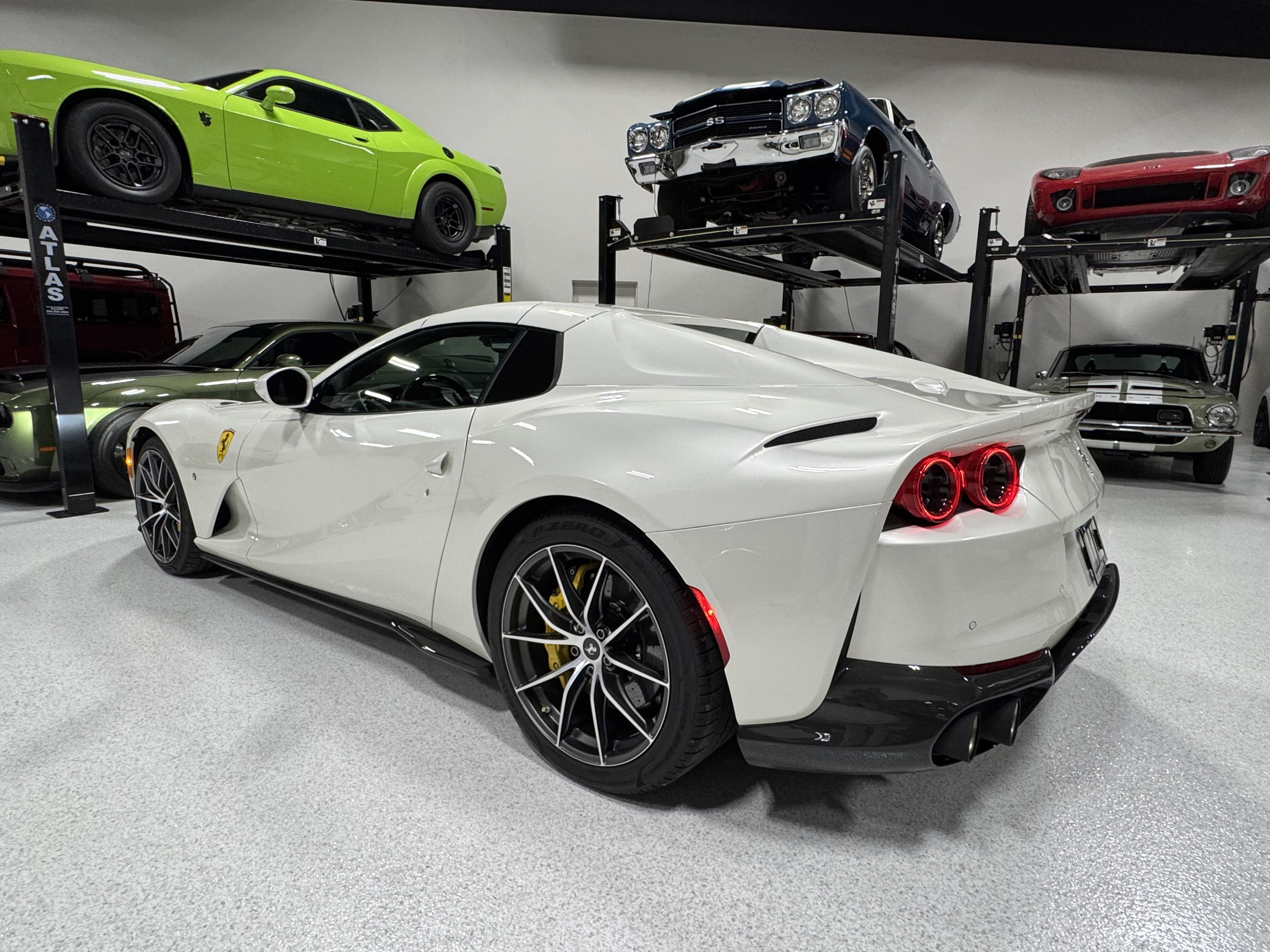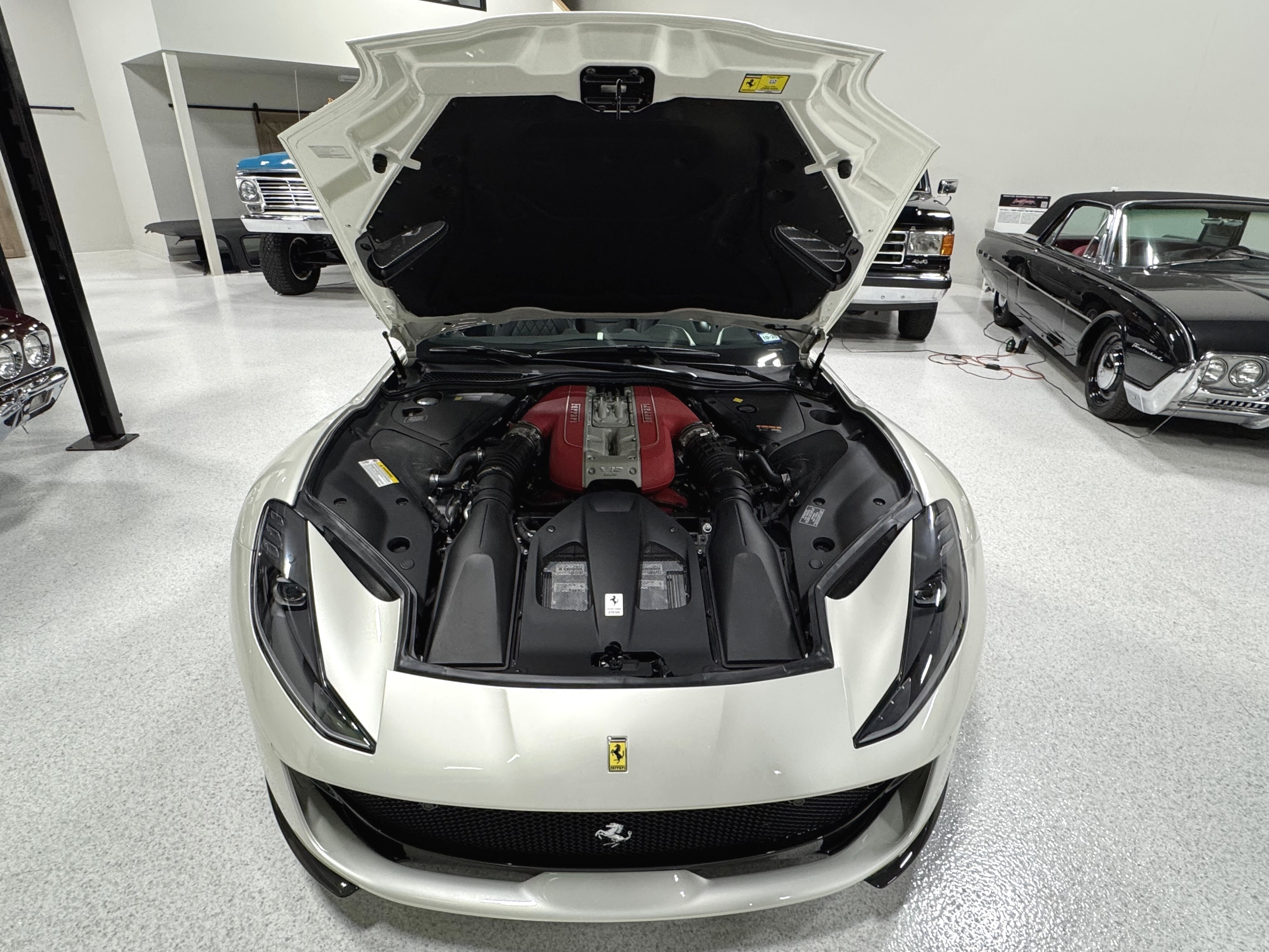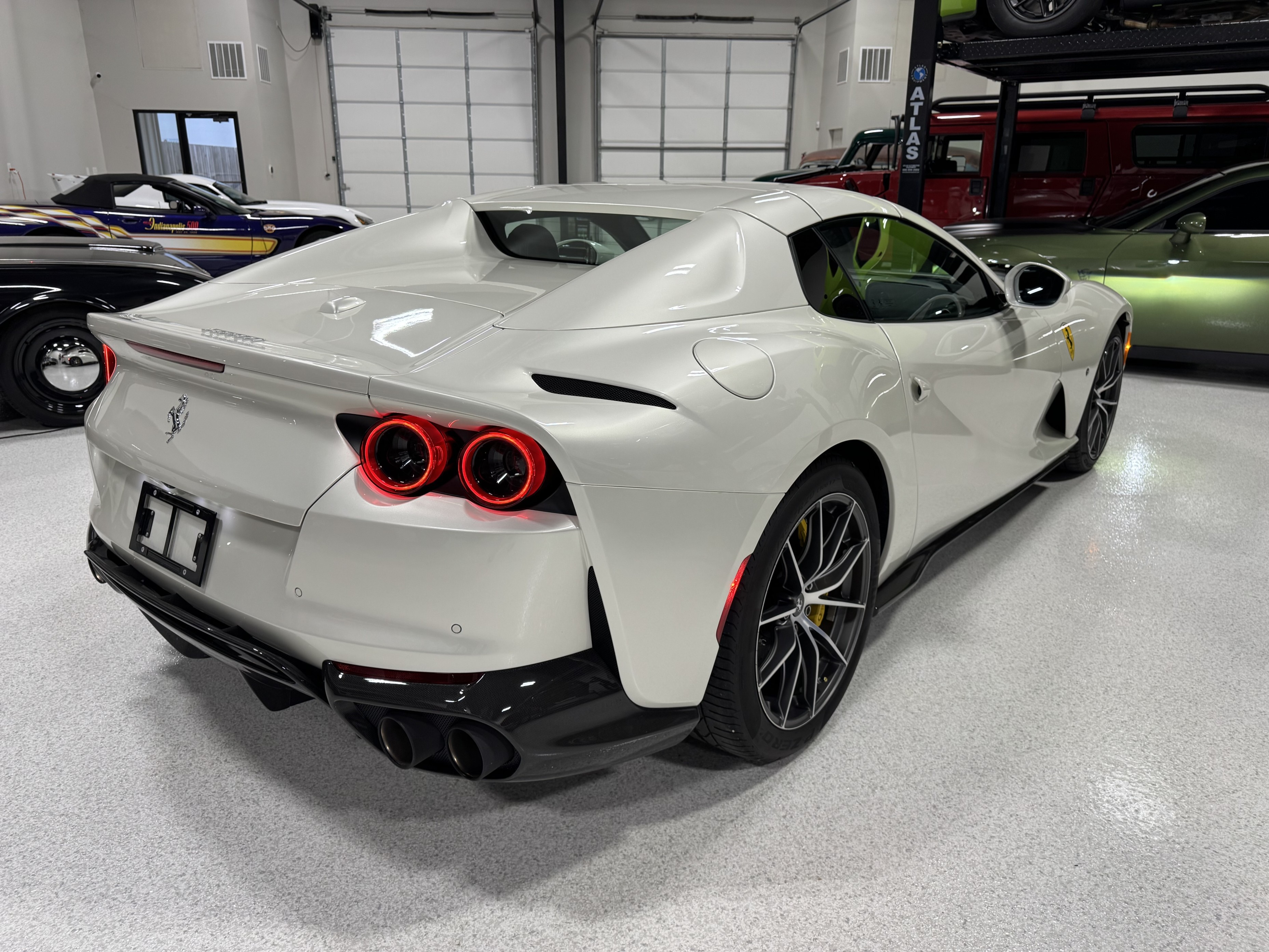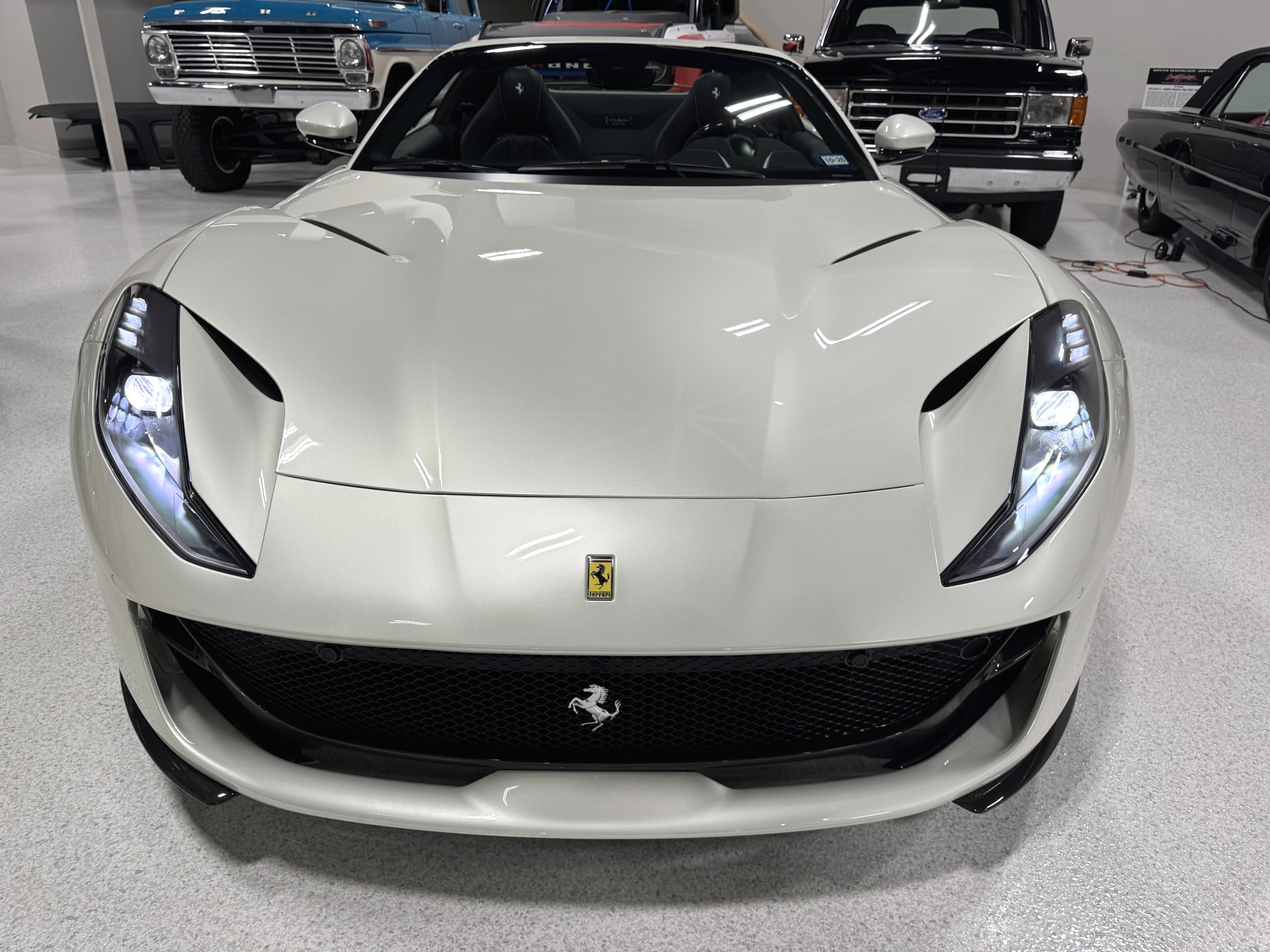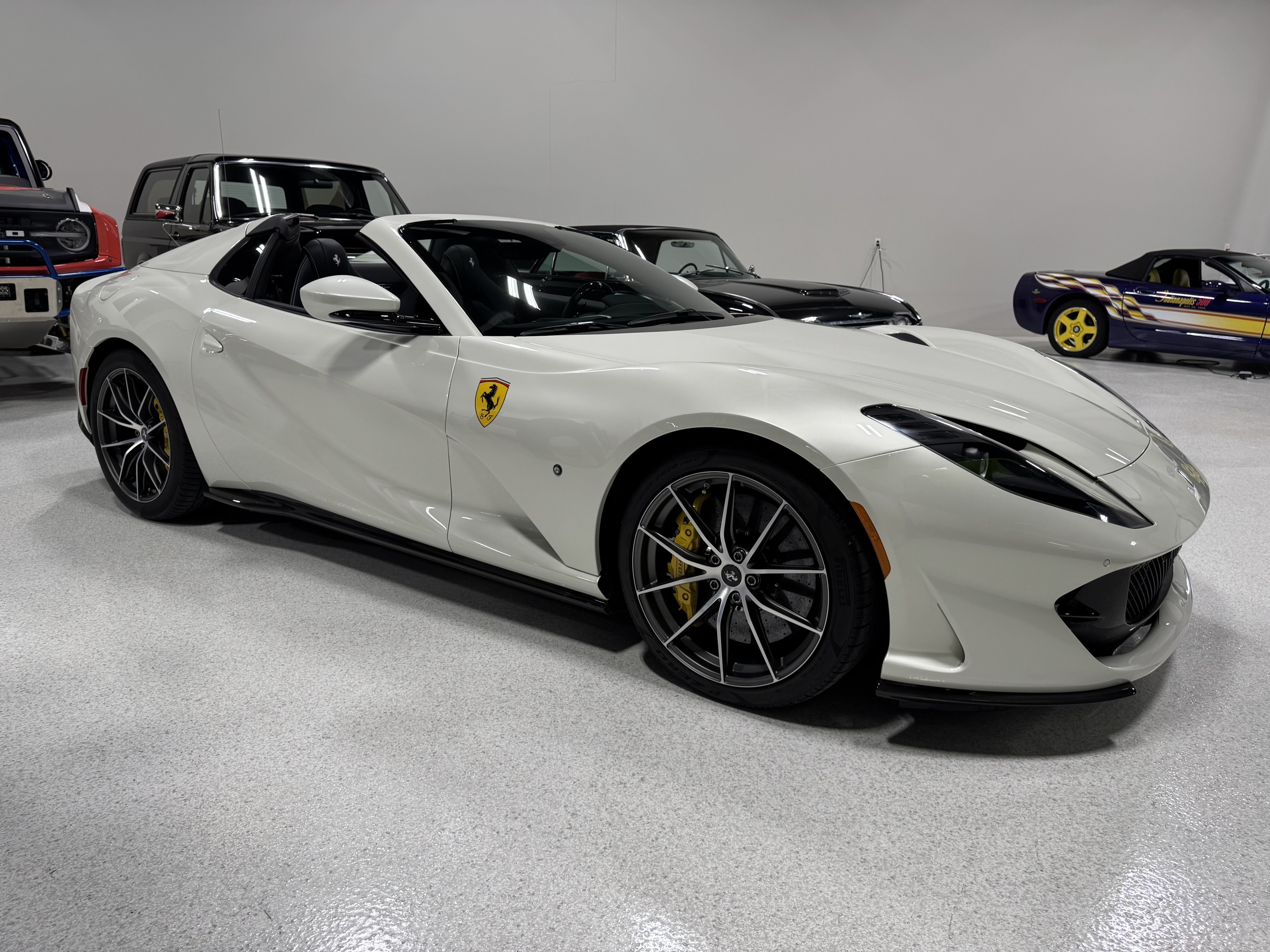 This 812GTS was an exclusive order from Ferrari's Taylor-Made program. **$592,901 BUILD** Color is: Extra Range Bianco Italia. $188K OPTIONS. **Airbrushed Scuderia Ferrari fender shields: $14k option.** All service/maintenance complete and up-to-date @ BOARDWALK FERRARI. No picks / No paintwork / Mint Condition. Nonsmoker. Powered by a 6.5-liter F140 V12 mated to a seven-speed F1 dual-clutch automatic transaxle and Ferrari’s E-Diff limited-slip differential, the car has black leather upholstery, an electronically operated hardtop, 20″ ten-spoke racing alloy wheels, four-wheel steering, front and rear cameras and parking sensors, airbrushed Scuderia Ferrari fender shields, carbon-fiber exterior and interior accents, heated power-adjustable bucket seats, navigation, and a JBL Professional Hi-Fi sound system. Exterior details include an electronically operated hardtop, LED headlights and tail lights, front and rear cameras, carbon-fiber accents, rear fog lights, parking sensors, and quad exhaust outlets. Paint protection film has been applied to the body, which has also received a ceramic coating. The 20″ ten-spoke racing alloy wheels are mounted with 275/35 front and 315/35 rear Pirelli P Zero tires. Stopping power is provided by Ferrari-branded yellow calipers over cross-drilled carbon-ceramic rotors. The car is equipped with a Virtual Short Wheelbase four-wheel-steering system and a magnetorheological suspension. No surprises. This was not an auction or trade-in, we know and consigned for the original owner and now the 2nd owner.