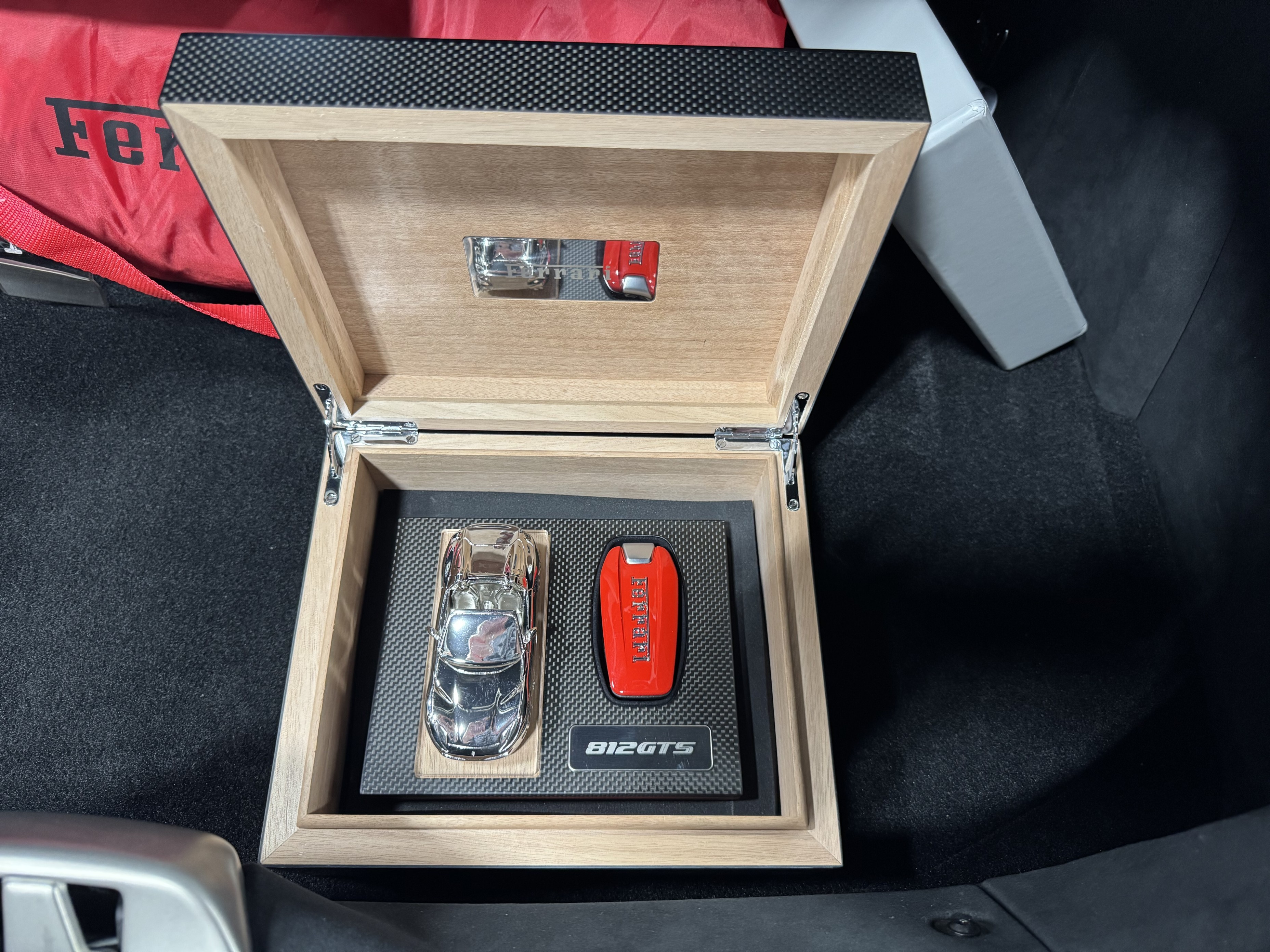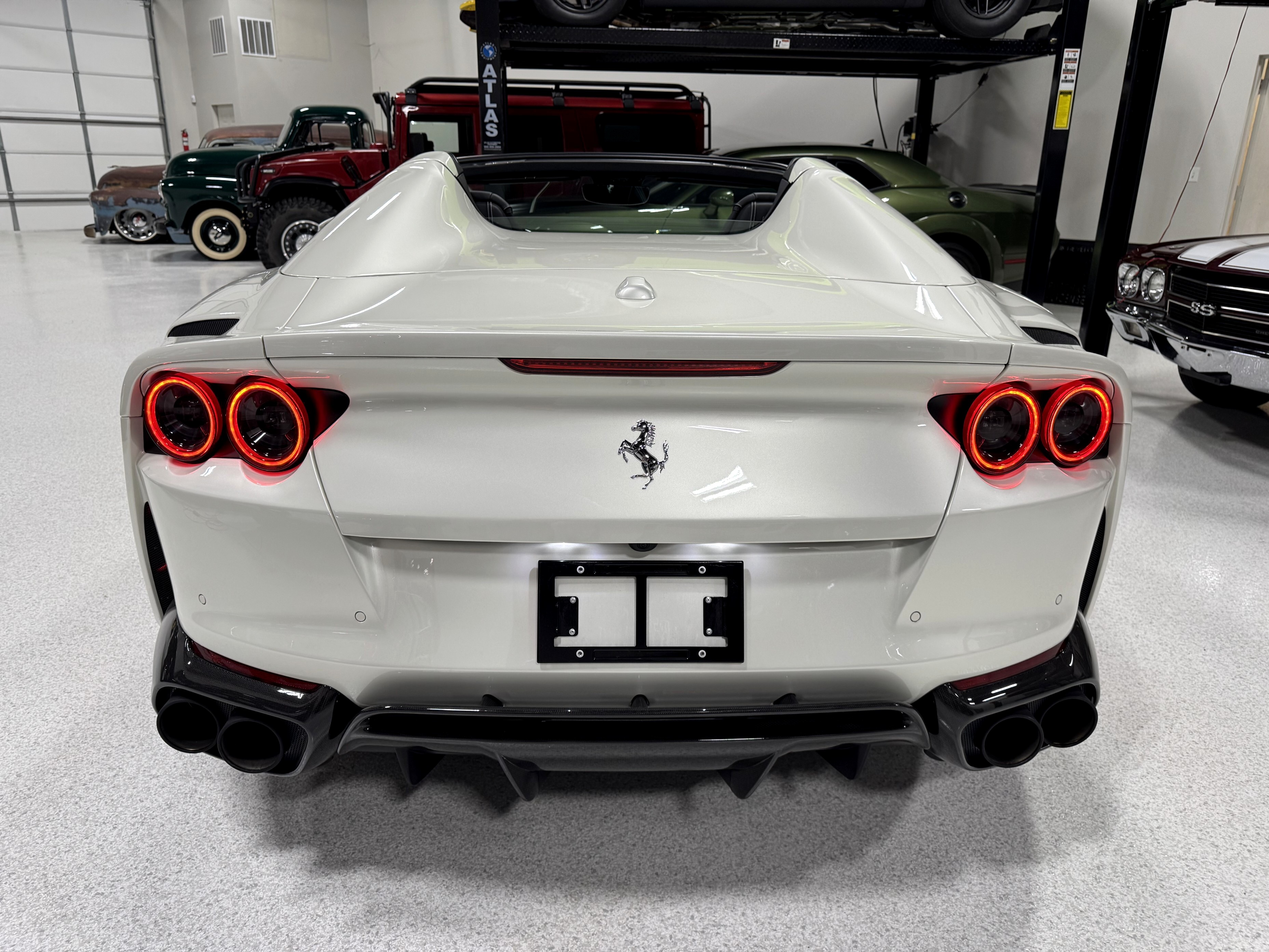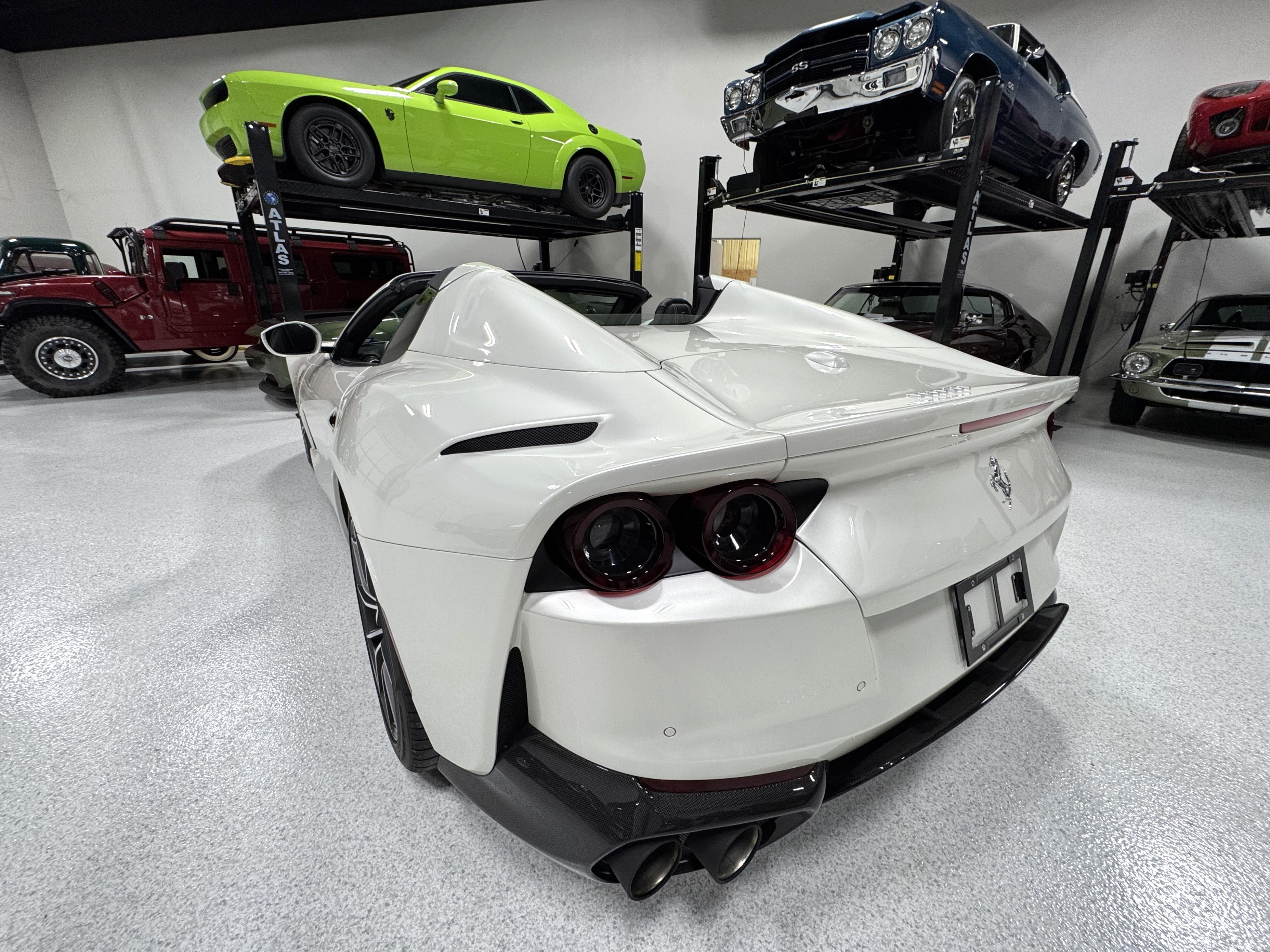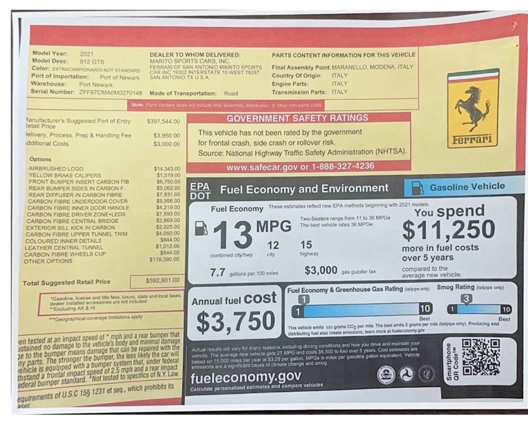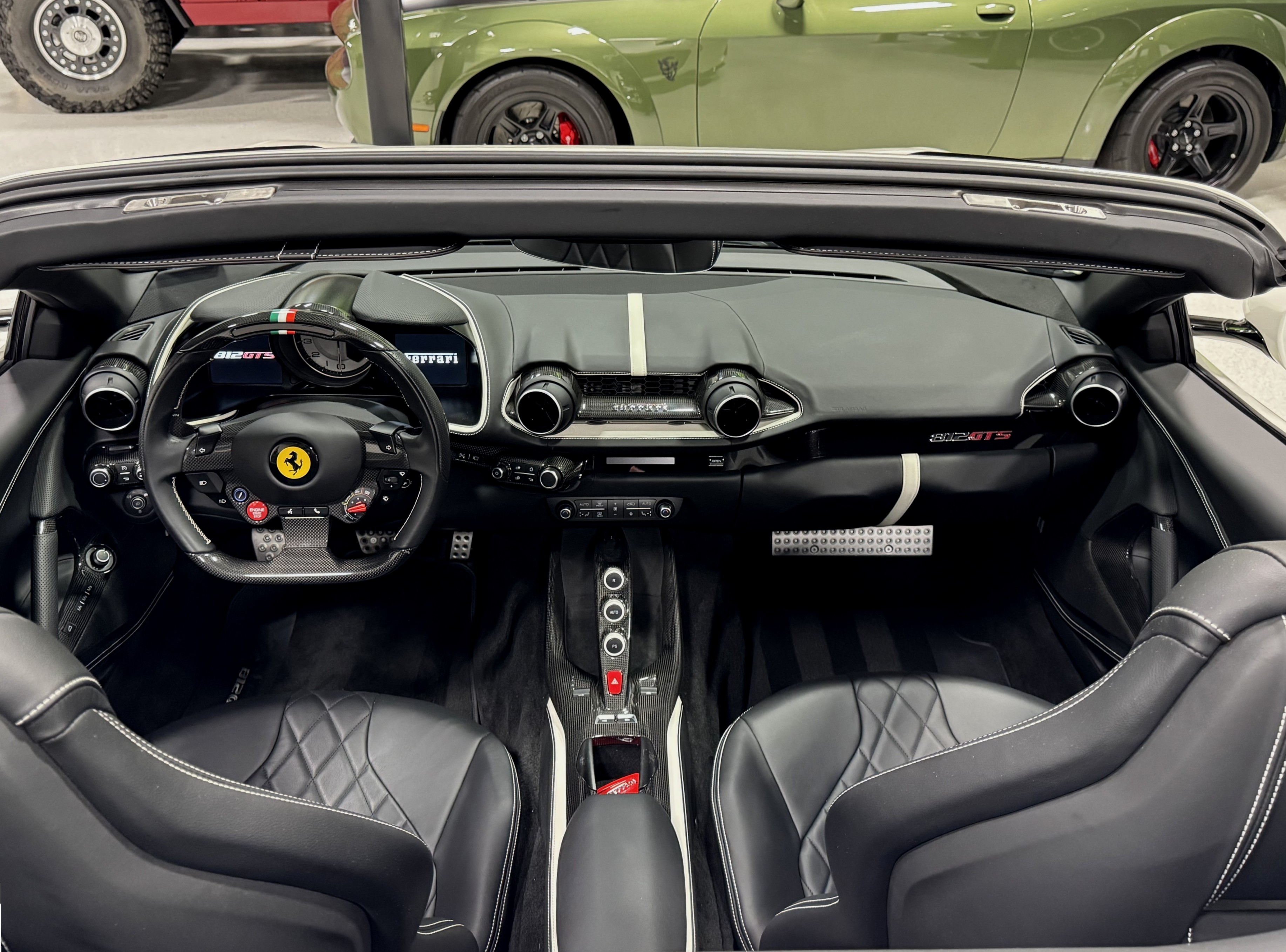 This 812GTS was an exclusive order from Ferrari's Taylor-Made program. **$592,901 BUILD** Color is: Extra Range Bianco Italia. $188K OPTIONS. **Airbrushed Scuderia Ferrari fender shields: $14k option.** All service/maintenance complete and up-to-date @ BOARDWALK FERRARI. No picks / No paintwork / Mint Condition. Nonsmoker. Powered by a 6.5-liter F140 V12 mated to a seven-speed F1 dual-clutch automatic transaxle and Ferrari’s E-Diff limited-slip differential, the car has black leather upholstery, an electronically operated hardtop, 20″ ten-spoke racing alloy wheels, four-wheel steering, front and rear cameras and parking sensors, airbrushed Scuderia Ferrari fender shields, carbon-fiber exterior and interior accents, heated power-adjustable bucket seats, navigation, and a JBL Professional Hi-Fi sound system. Exterior details include an electronically operated hardtop, LED headlights and tail lights, front and rear cameras, carbon-fiber accents, rear fog lights, parking sensors, and quad exhaust outlets. Paint protection film has been applied to the body, which has also received a ceramic coating. The 20″ ten-spoke racing alloy wheels are mounted with 275/35 front and 315/35 rear Pirelli P Zero tires. Stopping power is provided by Ferrari-branded yellow calipers over cross-drilled carbon-ceramic rotors. The car is equipped with a Virtual Short Wheelbase four-wheel-steering system and a magnetorheological suspension. No surprises. This was not an auction or trade-in, we know and consigned for the original owner and now the 2nd owner.